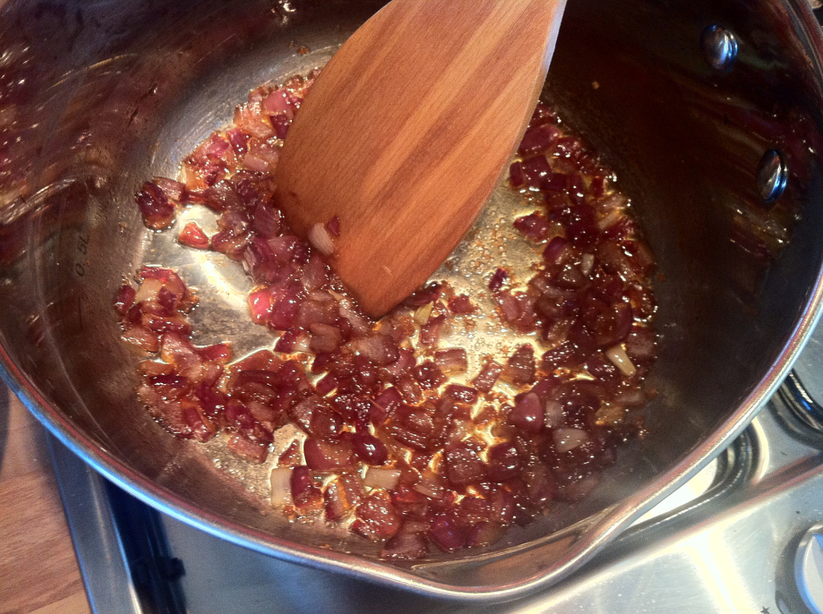 Turn off the heat and let it cool a bit. If you add the tomatoes immediately they get this….over-fried tomato taste that I really don’t like.